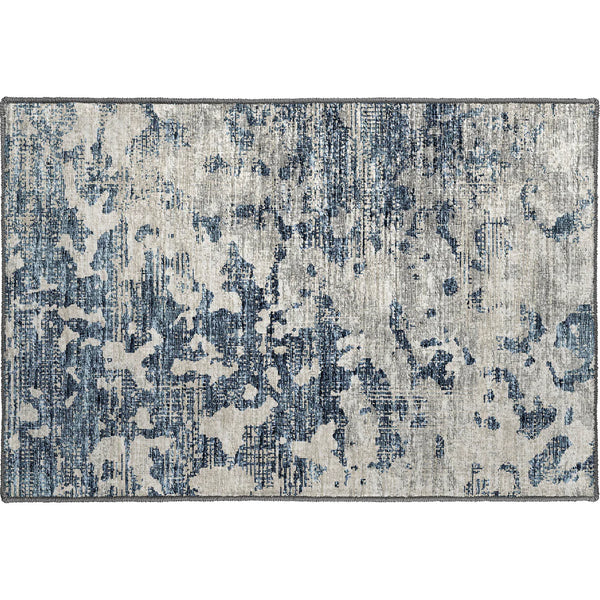 Rich tones of navy, beige, ivory, and taupe flow together in a softly weathered abstract design reminiscent of ocean mist, worn stone, and driftwood textures. The layered pattern mirrors the rhythmic movement of waves meeting the sand—timeless, natural, and effortlessly elegant. Perfect for both nautical and coastal interiors, this rug adds a grounding sense of tranquility while maintaining a sophisticated modern edge.